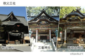 秩父三社とは「三峯神社」「寳登山神社」「秩父神社」の三つの神社です。