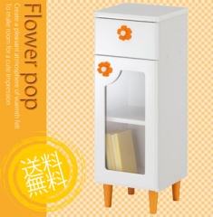 花の形が印象的な、かわいいリビングシリーズ(ホワイトキャビネット)です。