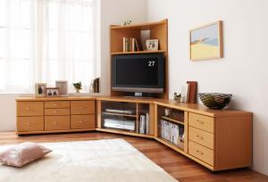奥行があまり必要ない薄型テレビにぴったりのコーナーテレビ台。