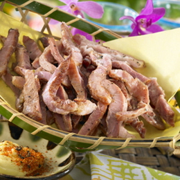 豚肉を香り高くスモークして独自の味付けをした新感覚のおつまみです。販売以来人気で完売する店舗が後を絶たない大人気商品です。